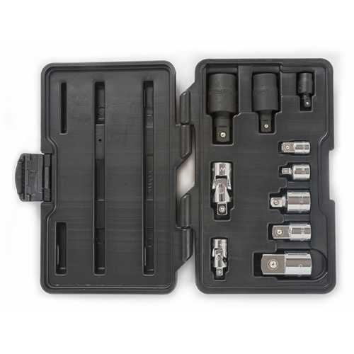 | Includes | 1/4" Drive Universal Joint, 3/8" Drive Universal Joint, 1/4" Drive Impact Universal Joint, 1/4" Drive 1/4" F x 3/8" M Adapter, 3/8" Drive 3/8" F x 1/4" M Adapter, 3/8" Drive 3/8" F x 1/2" M Adapter, 1/2" Drive 1/2" F x 3/8" M Adapter, 1/2" Drive 1/2" F x 3/4" M Adapter |